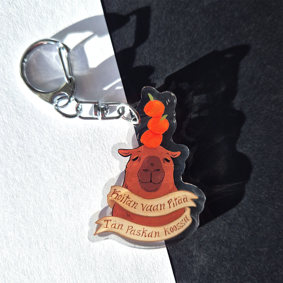 Tää kapybara vaan koittaa pitää kaiken p*skan koossa! Täydellinen avaimenperä niille, ketkä tasapainottelee elämän velvollisuuksien kanssa! Hauska ja asenteellinen kapybara-avaimenperä koristamaan avaimia, laukkuja ja reppua tai mitä ikinä keksitkään!