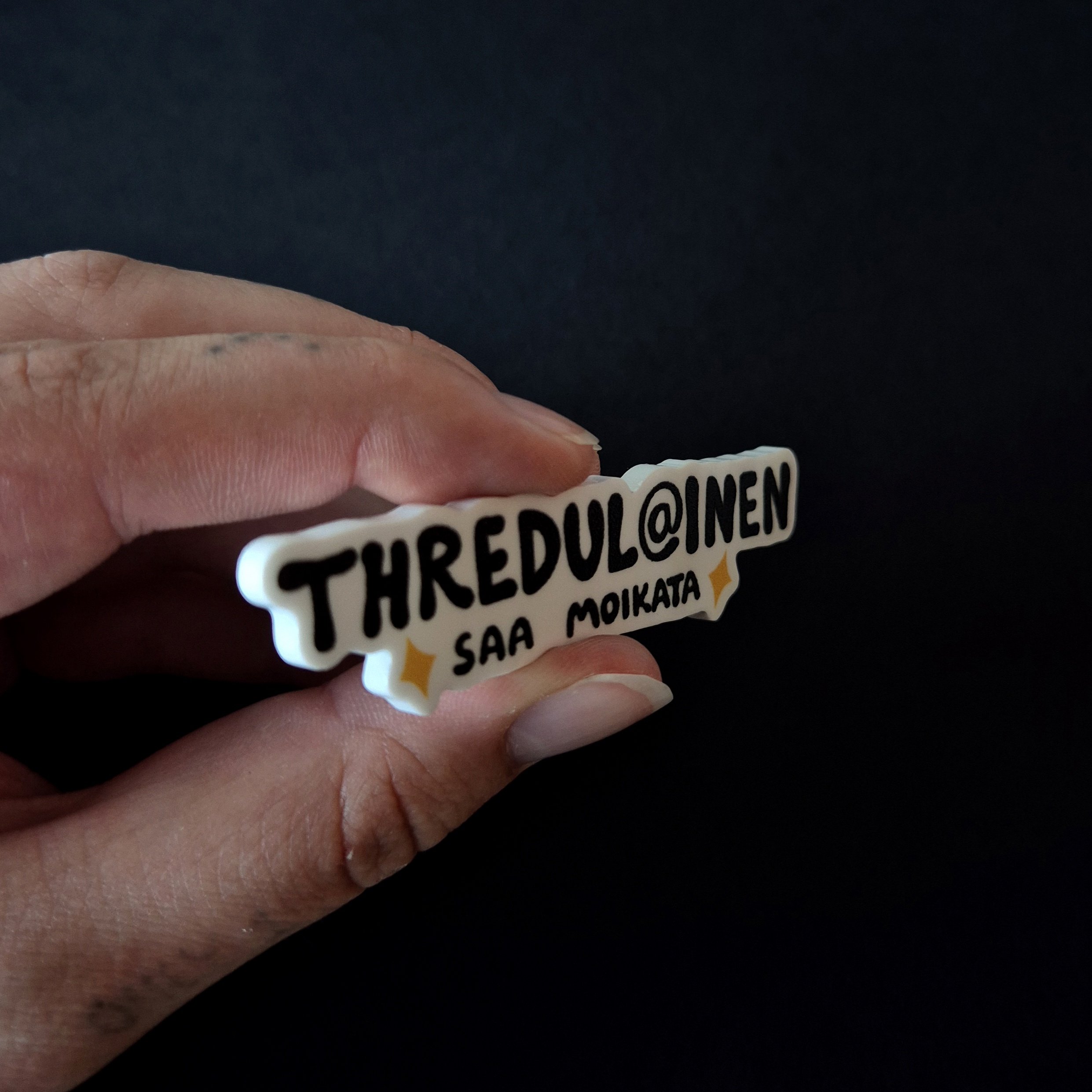 + Free Shipping”THREDULAINEN – saa moikata!” pinssi reppuun kiinni ja muita thredulaisia bongaamaan kaupungille! Sain Threadsissä pyynnön, että suomalainen Threads-yhteisö kaipais tällaista omaa merkkiä, mistä tunnistaa omansa, ja nyt niitä saa!
